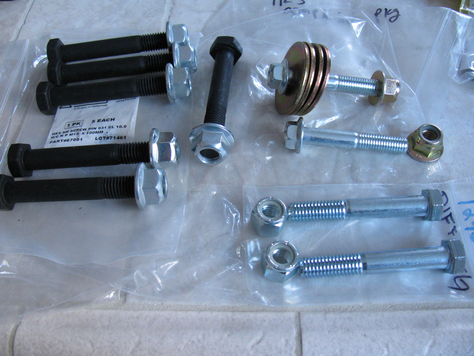 The other two are included in the “IRS Completion Package” and are part numbers 25995 for the flanged locknuts and 14952 for the two bolts. I am not sure why these are metric. . . .
