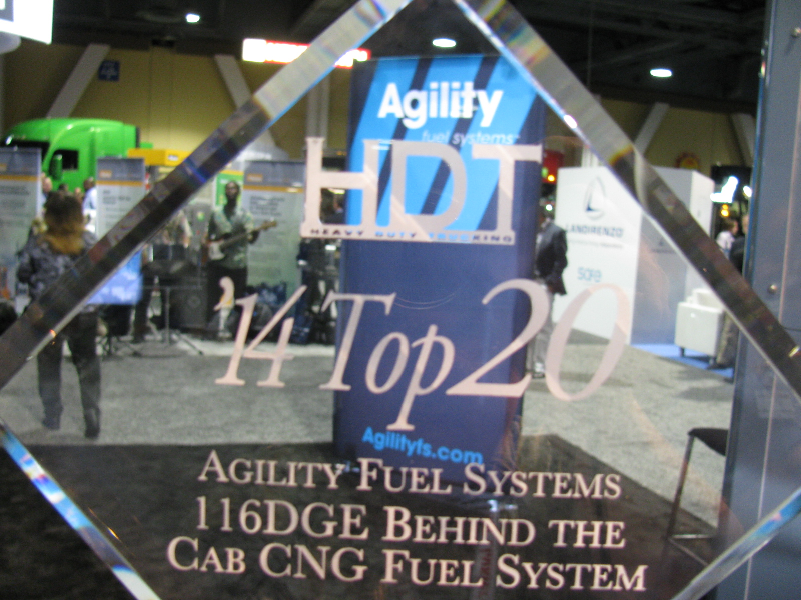 Today’s lead photo — an award we received…. The Agility Fuel Systems 116 DGE CNG Fuel System won a Top 20 Award from Heavy Duty Trucking – see more on the HDT website.