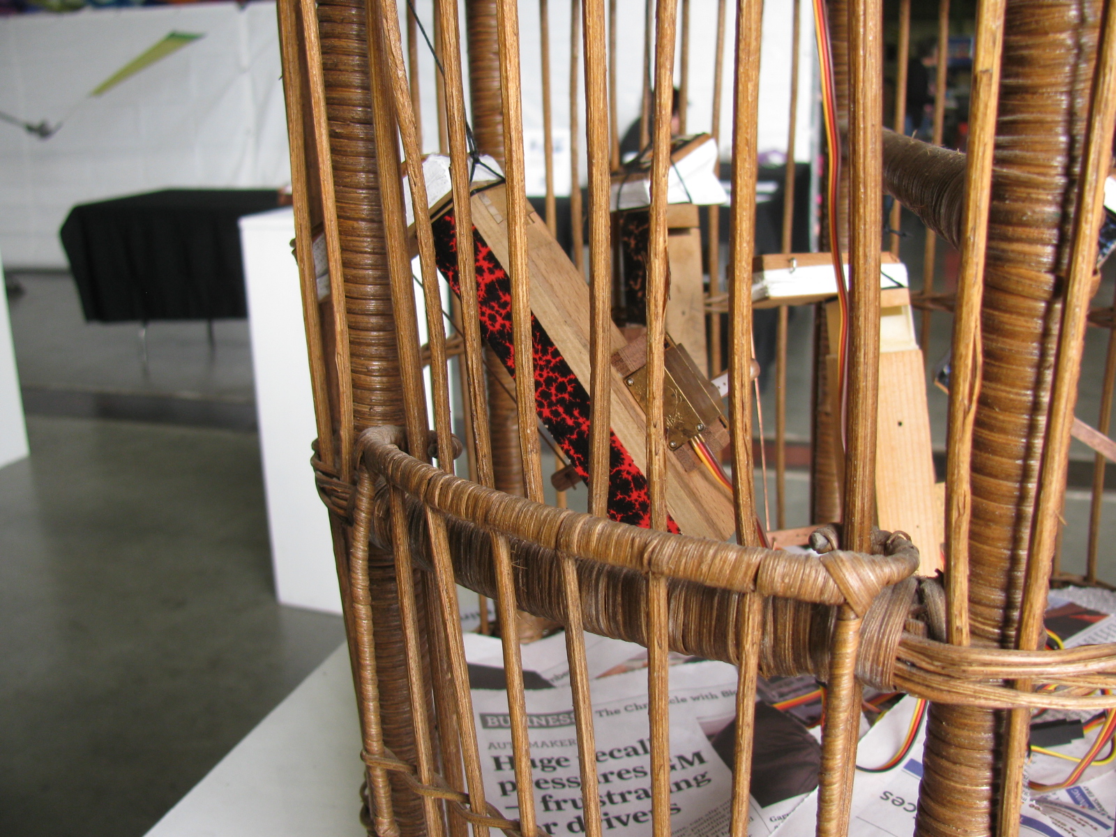 Here is a wonderful musical sculpture crafted by Christopher T. Palmer on display at the Maker Faire. The piece is called “Nicht mit dem Titel, ein” Google translate says this means “Not with the title, a” or something like that.