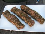 I am still cleaning out my freezer, so I decided to defrost some pork loins and cook them on the BGE. The recipe comes from Steven Raichlen’s book, How to Grill. This is a great book on barbecuing just about anything. I especially like the sections where Raichlen shows us how to butcher the meats. Excellent dish. I served it with some homemade pickled onions.