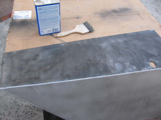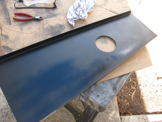 I washed the panels with dish washing liquid in my kitchen sink, and applied two coats of truck bed liner paint. Now the panels look much better. The truck bed paint has a slight wrinkle finish so I am not sure how hard this will be to keep clean. It is, however, better than that greasy under coating stuff. Here is a picture of the bottom surface of the transmission tunnel cover.