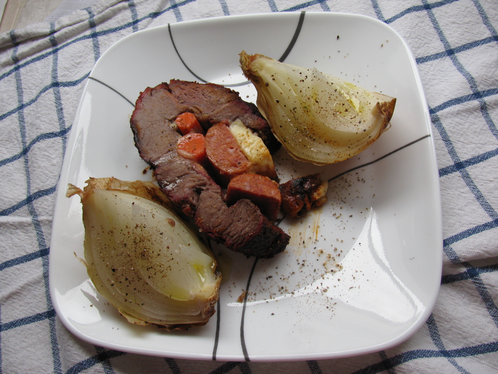 I made a brisket for the first time a few weeks ago. I followed the directions in Steve Raichlen’s BBQ University (“Smokelahoma” Brisket), and used my large Big Green Egg.