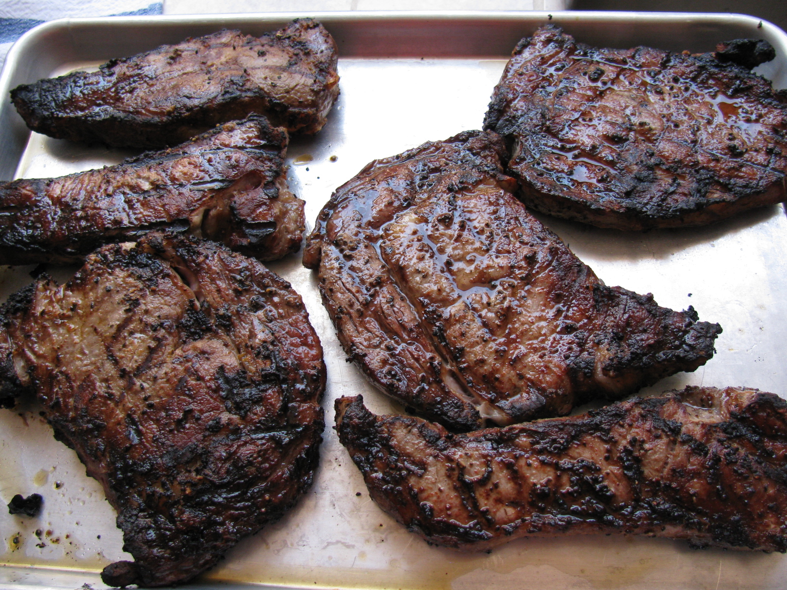 I had several strip and rib eye steaks taking up room in my freezer, and decided this would be a great time to stoke the Big Green Egg and cook ’em. Because anyone can direct grill steaks with the proper seasonings, I decided to do something different, and prepared the steaks using Steven Raichlen’s “Hellfire Steaks” recipe . The original recipe can be found here – and in Raichlen’s book, “How to Grill.”