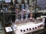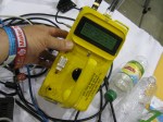 Marty Woll brought a portable spectrum analyzer and an assortment of hand-built antennas, including this corkscrew (circular polarized) antenna. A weak signal source was placed at the far end of the booth. By moving the antenna around, the spectrum analyzer shows frequency and signal strength. This can visually demonstrate antenna polarization and direction as well as frequency and harmonics.
