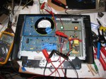 The lightning detector-300 kHz receiver is built into a broken LCD TV cabinet. Originally, I thought I could re-use the power supply, infrared remote control and audio amplifier. Unfortunately, the TV is built with a small number of ICs with multiple functions. The power supply performed strangely when I probed around to map out the output voltages. Since I was on a tight schedule, I gutted the unit, and kept only the speakers.