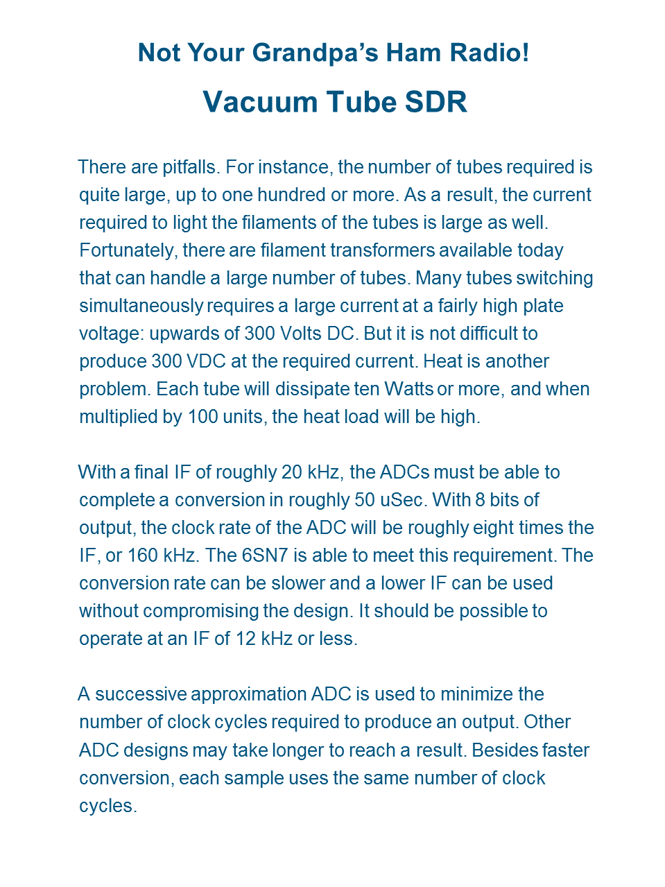 This is an interesting mix of old and new. Dennis Kidder, W6DQ, came up with this idea. Vacuum tubes are fully capable of performing many of the same functions as modern solid-state devices.