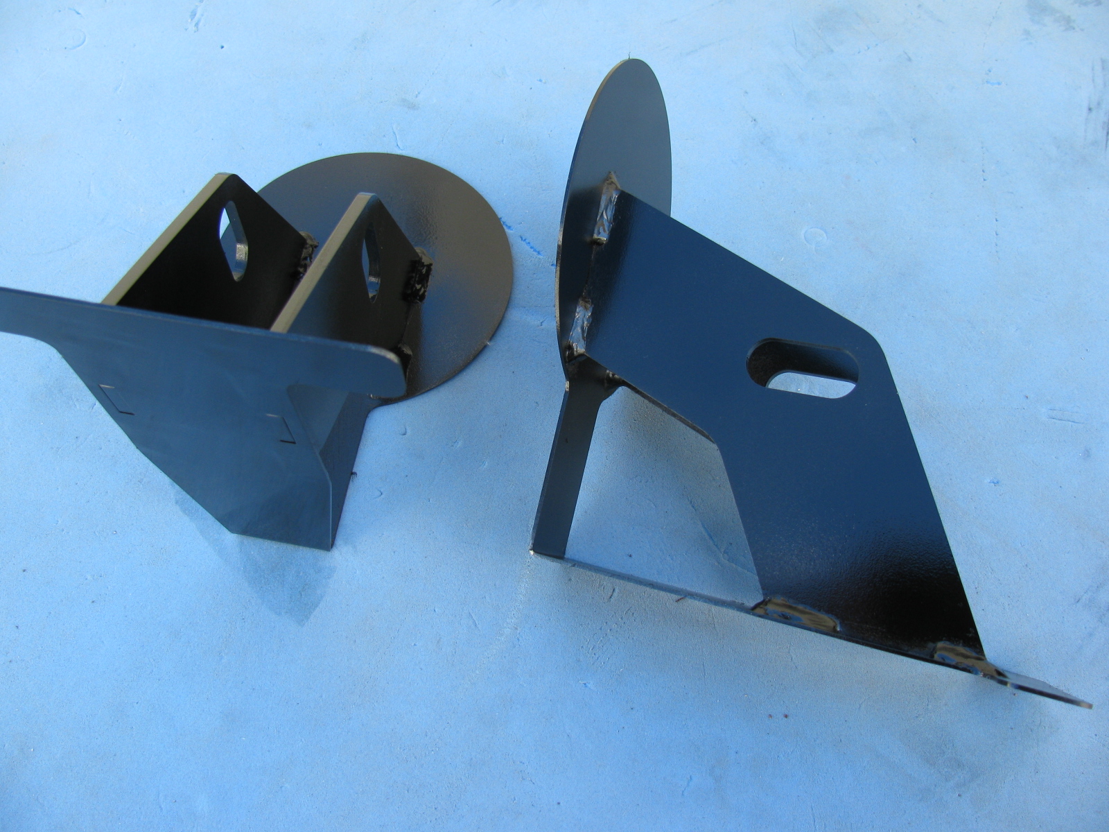 Inspired by a post on the Factory Five Racing forum and the dry and sunny weather this weekend, I decided to paint some of my body mounting parts. I am using gloss black Rust-Oleum Appliance Epoxy paint for these pieces. I have used this paint for my electronic and radio projects with good results. The paint dries very hard and is waterproof and washable, perfect for these parts.