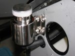 This is the clutch quadrant adjuster (above). This Nylok had to be ground down to fit properly. The hole in the adjuster plate is too close to the master cylinder mounting plate. A better solution would be to eliminate the Nylok altogether and thread the small plate. Then the lock nut and Allen bolt are used to make clutch travel adjustments.