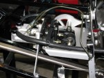 First, I tried mounting the pump on the lower brace, under the IRS pumpkin. But that just did not look right, and it was difficult to access from either above or below the car. Then I tried mounting the pump on the Factory Five Metal battery box, but discovered the battery box blocks access to the fill and drain plugs on the differential.