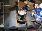 My go-to car builder friend Spider Larry once again came through for me. Using a Mapp gas torch and a piece of pipe, he separated the ball joint from the top mount for the passenger side suspension. Here are some pictures from the dis-assembly and re-assembly process on the Type 65 Coupe IFS, passenger side.