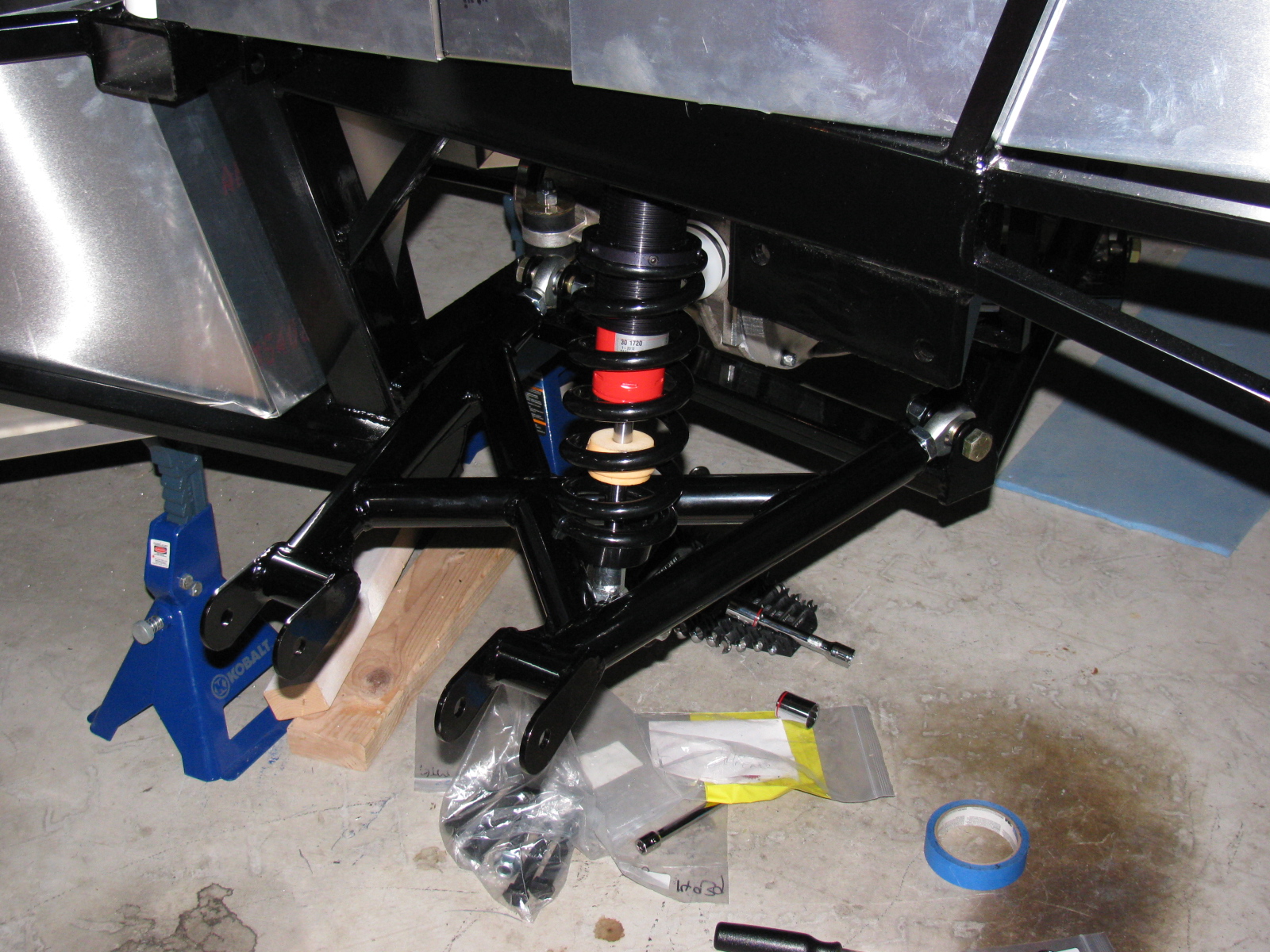 Here are some pictures of the driver side lower control arm and coil-over-shock being installed. . .